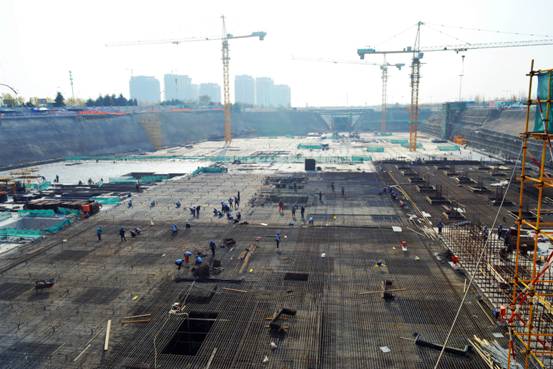 日前,由黃發(fā)集團(tuán)負(fù)責(zé)的新區(qū)市民中心項(xiàng)目快速推進(jìn)。項(xiàng)目于9月5日全面開工建設(shè),施工現(xiàn)場(chǎng)塔吊林立、機(jī)械轟鳴,呈現(xiàn)出一派如火如荼的施工場(chǎng)景。截至目前,已完成深基坑開挖及邊坡支護(hù)施工,累計(jì)開挖及外運(yùn)土石方約50萬方;完成5部塔吊樹立;完成基礎(chǔ)墊層、抗浮錨桿施工;正在進(jìn)行底板防水、防水保護(hù)層以及底板鋼筋加工(其中底板防水完成20000平方米,進(jìn)場(chǎng)鋼筋1800噸);完成海王路地下通道負(fù)二層結(jié)構(gòu)施工。