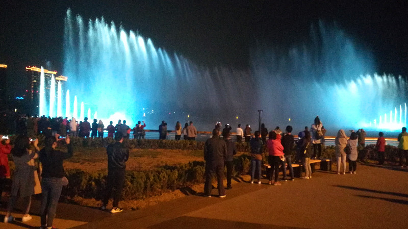 近日,位于城市陽臺景區(qū)的音樂噴泉吸引了眾多市民游客前往觀賞,視頻和美照刷爆了不少人的“朋友圈”,一到噴泉開始的時間,整個廣場人頭攢動,吸引大批游客流連忘返。位于景區(qū)中央湖的音樂水秀噴泉,是西海岸新區(qū)最大的音樂噴泉,周一至周四每天20:00至20:30播放一場,周五至周日或節(jié)假日每天19:30至20:00,20:30至21:00播放兩場。