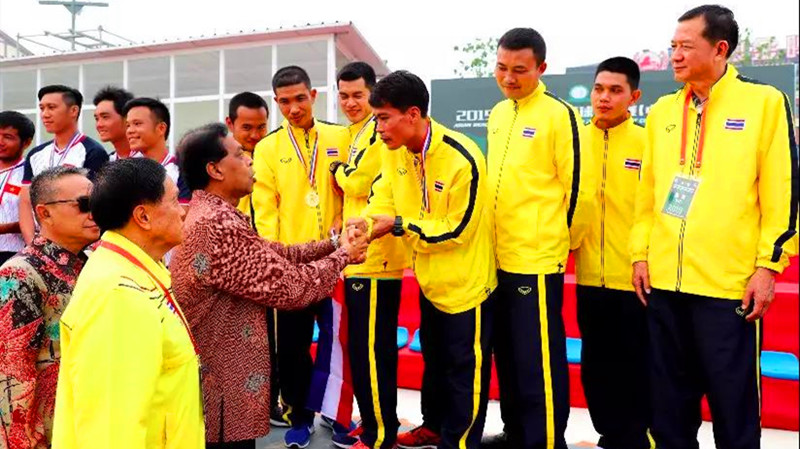 經(jīng)過4天的激烈角逐,最終泰國(guó)隊(duì)包攬了男子四人組、女子四人組、男子三人組、女子三人組冠軍,越南隊(duì)獲得男子三人組亞軍,中國(guó)二隊(duì)分別獲得女子四人組和女子三人組亞軍,男子四人組季軍為印尼隊(duì)和馬來(lái)西亞隊(duì),男子三人組季軍為印尼隊(duì)和印度隊(duì),女子四人組和三人組季軍均為中國(guó)一隊(duì)和印度隊(duì)。在頒獎(jiǎng)儀式,上國(guó)際藤球聯(lián)合會(huì)秘書長(zhǎng)、亞洲藤球聯(lián)合會(huì)主席拿督阿布都.哈利姆.卡德爾致辭,表示賽事舉辦得非常成功,并為賽事承辦單位及運(yùn)營(yíng)單位“青島西海岸新區(qū)教育和體育局”、“青島黃島發(fā)展(集團(tuán))有限公司”、“江蘇一鳴體育文化傳播有限公司”頒發(fā)了特別貢獻(xiàn)獎(jiǎng)榮譽(yù)證書。