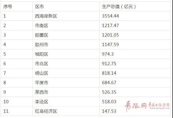 近日,青島市統(tǒng)計(jì)局發(fā)布了“2019年4季度分區(qū)市地區(qū)生產(chǎn)總值”,西海岸新區(qū)、市南區(qū)、即墨區(qū)、膠州市等4個(gè)區(qū)市GDP過千億元。