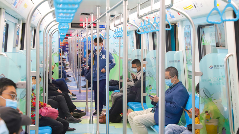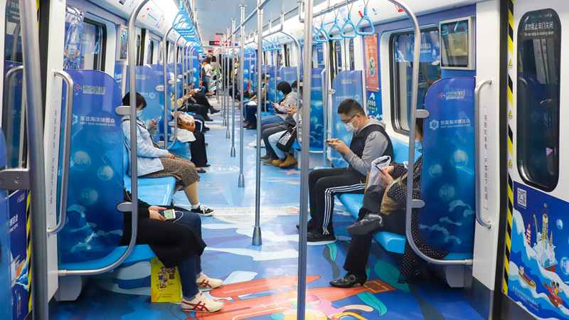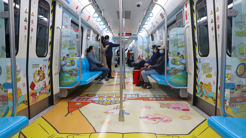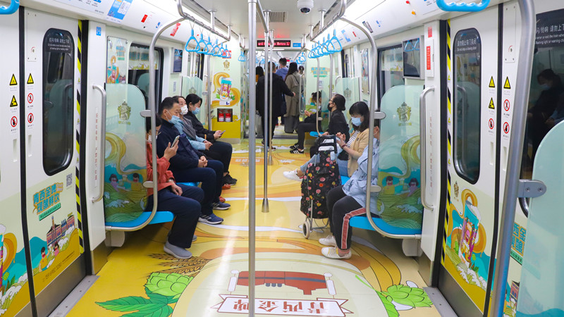 日前,“黃發(fā)集團(tuán)號(hào)”地鐵3號(hào)線品牌推廣專列上線發(fā)車。一系列獨(dú)具青島西海岸新區(qū)特色的品牌創(chuàng)意布滿車廂,引來不少乘客打卡合影。