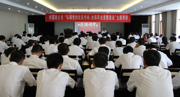 2012年7月21日上午,公司舉辦“弘揚黨的優(yōu)良傳統(tǒng),加強職業(yè)道德建設(shè)”主題考講活動,這是公司“道德講堂”活動開展的一項重要內(nèi)容,收到了良好的教育效果。市委學習委員會五位領(lǐng)導及公司相關(guān)領(lǐng)導出席并擔任評委,進行現(xiàn)場評分和點評。