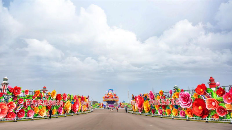 白天暢游花海,夜晚賞盡彩燈。金沙灘啤酒城還引入47組自貢彩燈,融合百年黨史、民俗非遺、城市特色和啤酒文化、海洋文化、哈舅IP等元素,以星光大道為主軸,打造出迎賓慶典、非遺體驗(yàn)、本土風(fēng)情、多彩新區(qū)、歡樂(lè)海灣等“五大主題彩燈區(qū)”,百余個(gè)彩燈造型,點(diǎn)亮不夜啤酒城。