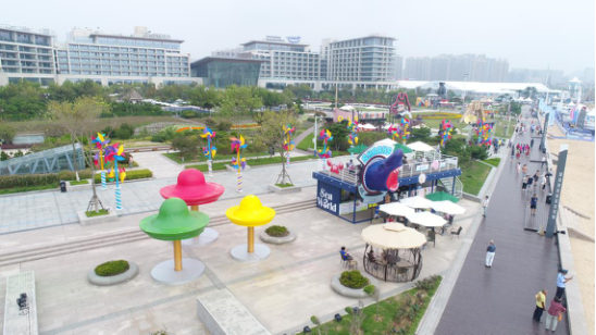 作為本次東亞商品展的新增區(qū)域,海岸展演區(qū)以海濱為背景,以沙灘做展臺(tái),展示的水上飛機(jī)、直升機(jī)、高速艇等海洋休閑設(shè)備引發(fā)市民和游客圍觀拍照,風(fēng)車街、涂鴉墻、風(fēng)情柱等文化藝術(shù)造型,充分展現(xiàn)了不同國家和地區(qū)的生活之美、文化之美。以大象作為主體形象展示的泰國風(fēng)情組團(tuán),熱辣的火焰搭配柔美的泰國女子,體現(xiàn)了力量與優(yōu)雅的完美融合;大型套娃展現(xiàn)的則是濃郁的俄羅斯風(fēng)情,優(yōu)美的水晶球芭蕾舞帶您領(lǐng)略俄羅斯的藝術(shù)風(fēng)情;標(biāo)志性的斗笠搭配新奇的懸浮表演,可以感受到那份屬于越南的淳樸與溫和;由西海岸的標(biāo)志性景觀及異域風(fēng)情景觀組成的街頭藝術(shù)組團(tuán),讓人在方寸間便可盡覽各國風(fēng)情。